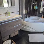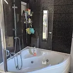 Die Badezimmer in der Corinthian Family Home sind mit einer Wellness-Badewanne, einer getrennten Toilette und einer Dusche ausgestattet. Es werden auch Badelaken angeboten.